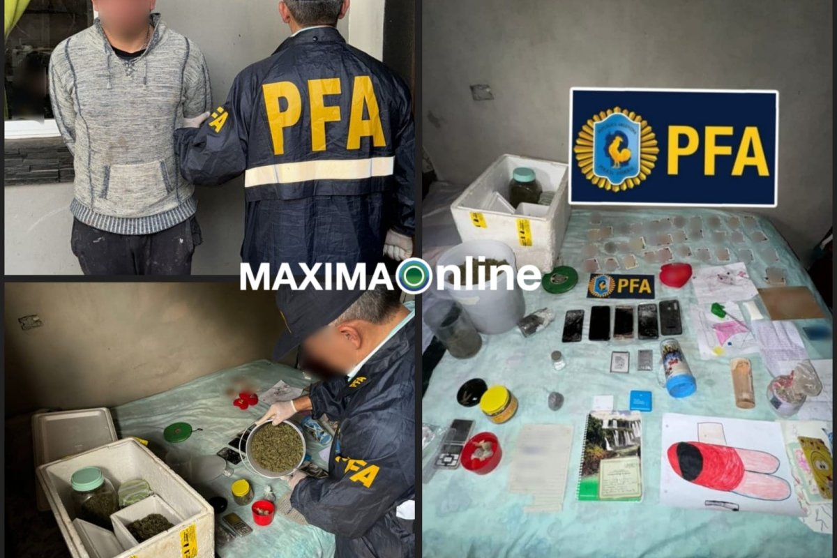 Por otra parte, también se halló y se procedió al secuestro de 1 kilo 400 gramos de marihuana fraccionada, 88 semillas de Cannabis Sativa, 10 gramos de clorhidrato de cocaína y demás elementos de fraccionamiento, llevando a cabo por ese motivo la aprehensión de un hombre  mayor de edad, pareja de la madre de los menores, quedando afectado en actuaciones sumariales por “Infracción a la Ley 23.737”, con intervención de la Unidad Fiscal temática de estupefacientes de turno en la Ciudad de concepción del Uruguay.