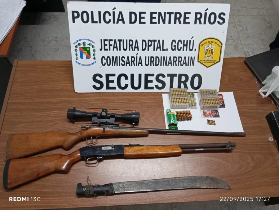 El resultado del operativo fue positivo, procediéndose al secuestro de dos armas de fuego tipo carabina calibre 22, una de ellas con mira telescópica, ambas sin numeración visible ni munición colocada; una importante cantidad de munición calibre 22 y 22 largo, como así también un machete de aproximadamente 50 cm de hoja.