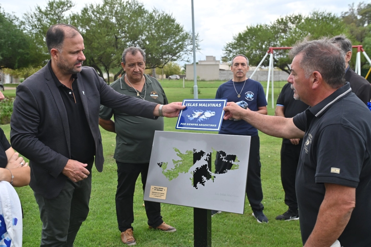 En el marco del homenaje, se colocó una ofrenda floral por parte del intendente y un representante de los Veteranos de Malvinas.
