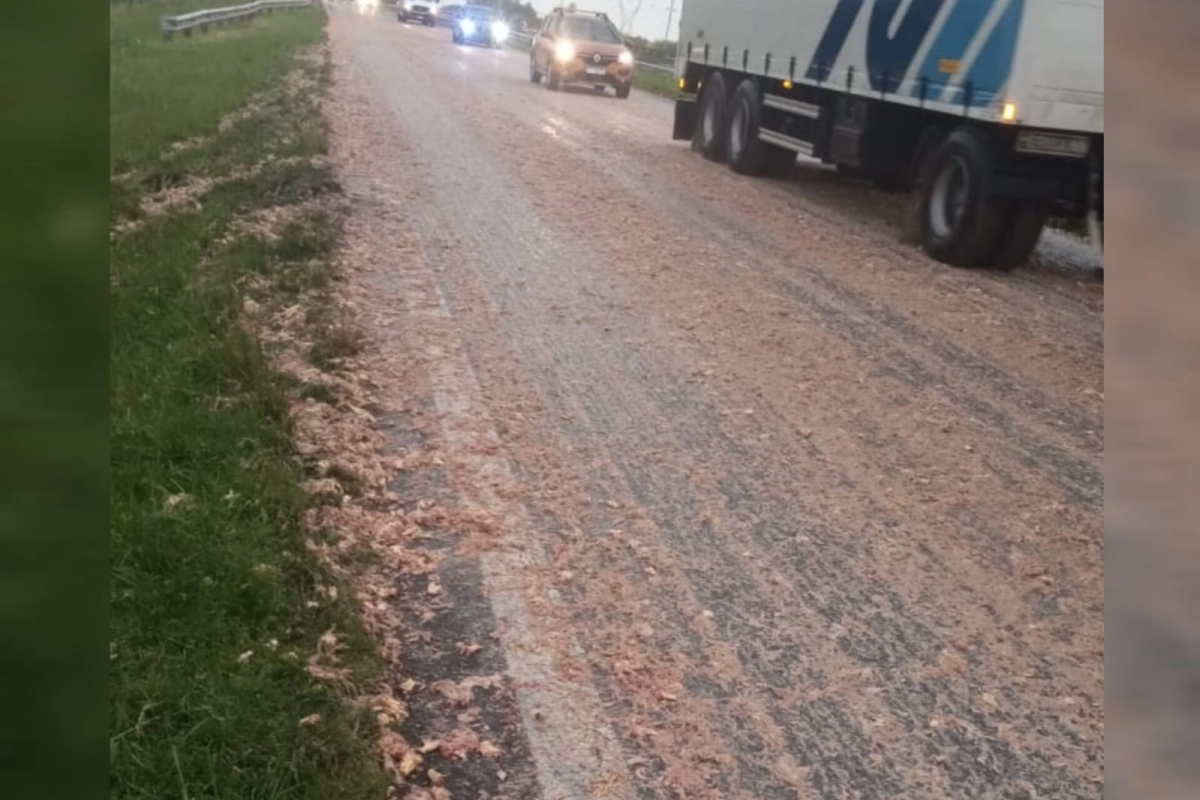 La ruta se llenó con desechos provenientes de un camión frigorífico de pollos que circulaba desde Buenos Aires hacia Entre Ríos.