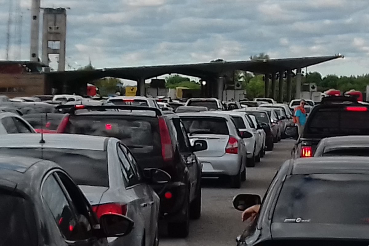 los micros que van a trasladar a la gente hacía el Puente Internacional y