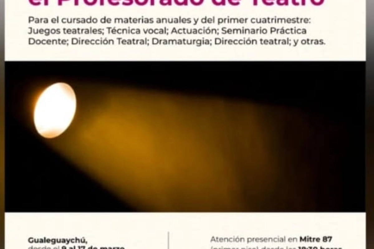 Algunas de las materias y seminarios que se pueden cursar son: Juegos teatrales; Técnica vocal; Actuación; Seminario de la Práctica Docente; Dramaturgia; Dirección teatral; entre otras.