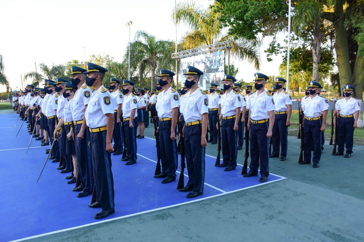 Por su parte, el director de Institutos Policiales, Comisario General Claudio González, manifestó: “Ese es el desafío de capacitar y formar, sobre todo formar a los primeros ingresantes, tenemos más de 600 jóvenes. Por eso, más allá de la pandemia, se ha continuado con esa capacitación y creo que el éxito está en la labor que hace cada uno de nuestros camaradas en las calles”.
