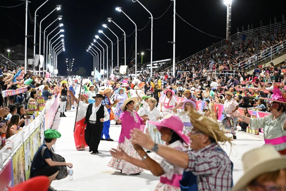 La noche abrió con la agrupación municipal del Área de Adulto Mayor, Esencialmente Divertidos. Luego se presentaron los ganadores en el rubro Murga, Los Cocoliches, y en Conjunto Carnavalesco, Vieja Fantasía. También se destacó la participación de Comparsa Esperanza, de Pueblo Cazes: con 19 años desde el inicio del proyecto, hoy cuenta con más de 50 integrantes entre cuerpo de baile y batucada. La temática de este año fue “Cómo te quiero mi Selección Argentina”, reflejando el espíritu de una gran familia que disfruta del carnaval cada verano.