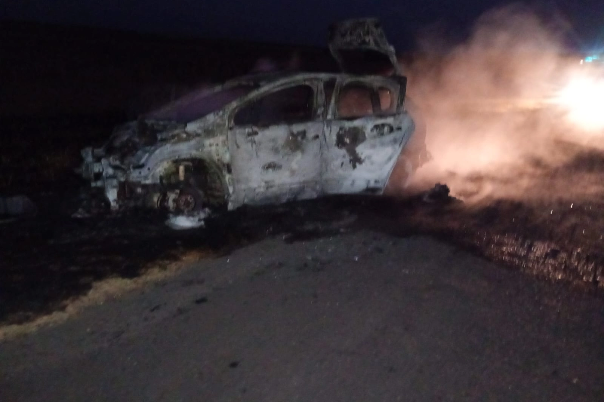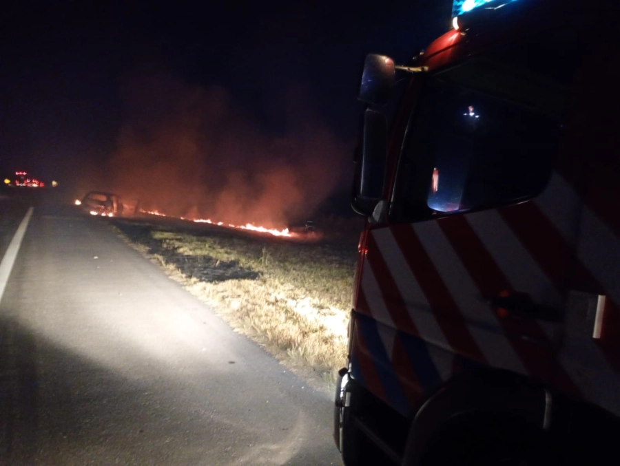 Al arribo se constató un incendio totalmente generalizado en el automóvil, con propagación hacia banquina y quema de pastizales.