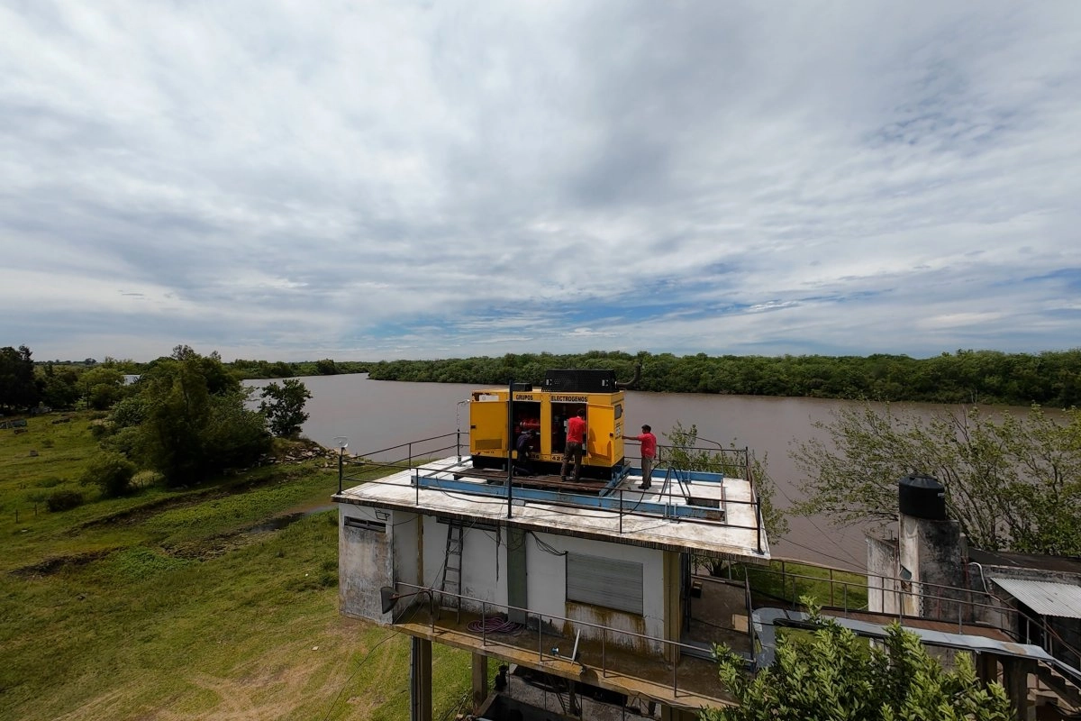 Por su diseño, prestaciones y nivel tecnológico, el grupo electrógeno está orientado al respaldo de servicios esenciales, como en este caso el sistema de bombeo de agua desde el río hasta la planta de Obras Sanitarias.