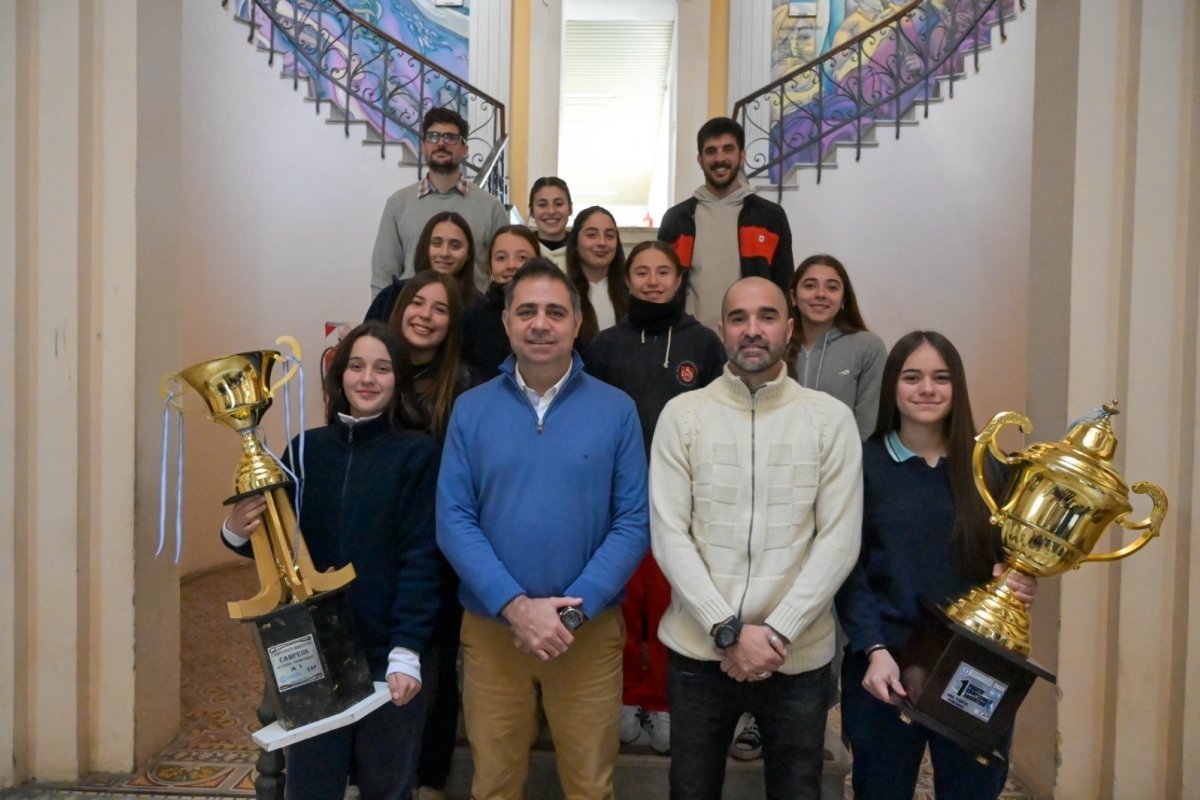 El intendente Mauricio Davico recibió este viernes a las jóvenes deportistas del Club Independiente que se consagraron campeonas del Torneo Argentino Juvenil Femenino de Hockey en Patines, disputado recientemente en San Juan.