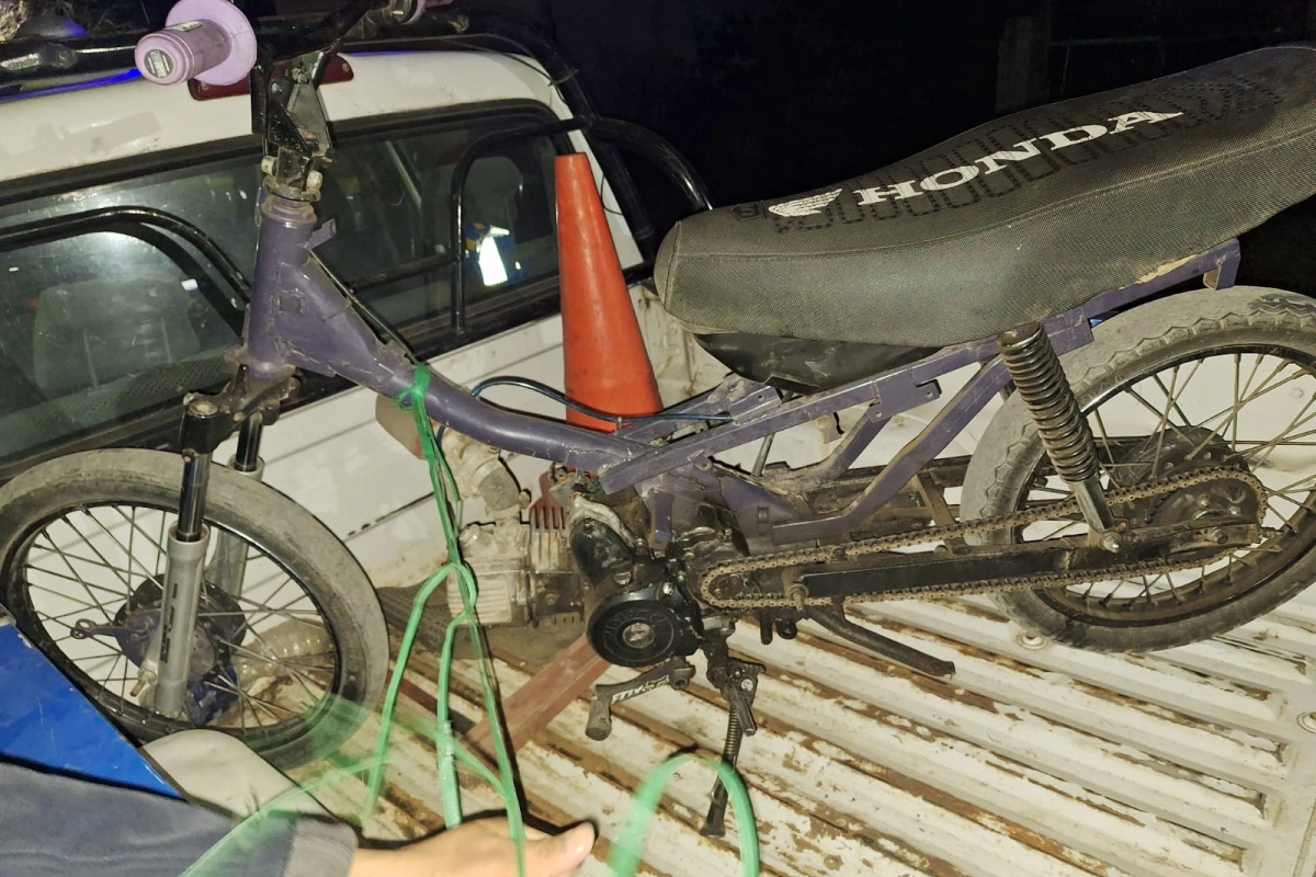 Los efectivos identificaron a un joven de 21 años de edad, quien trasladaba de tiro una motocicleta modificada, se trata de una Motomel 70 cc, que además, carecía de número de cuadro identificatorio.