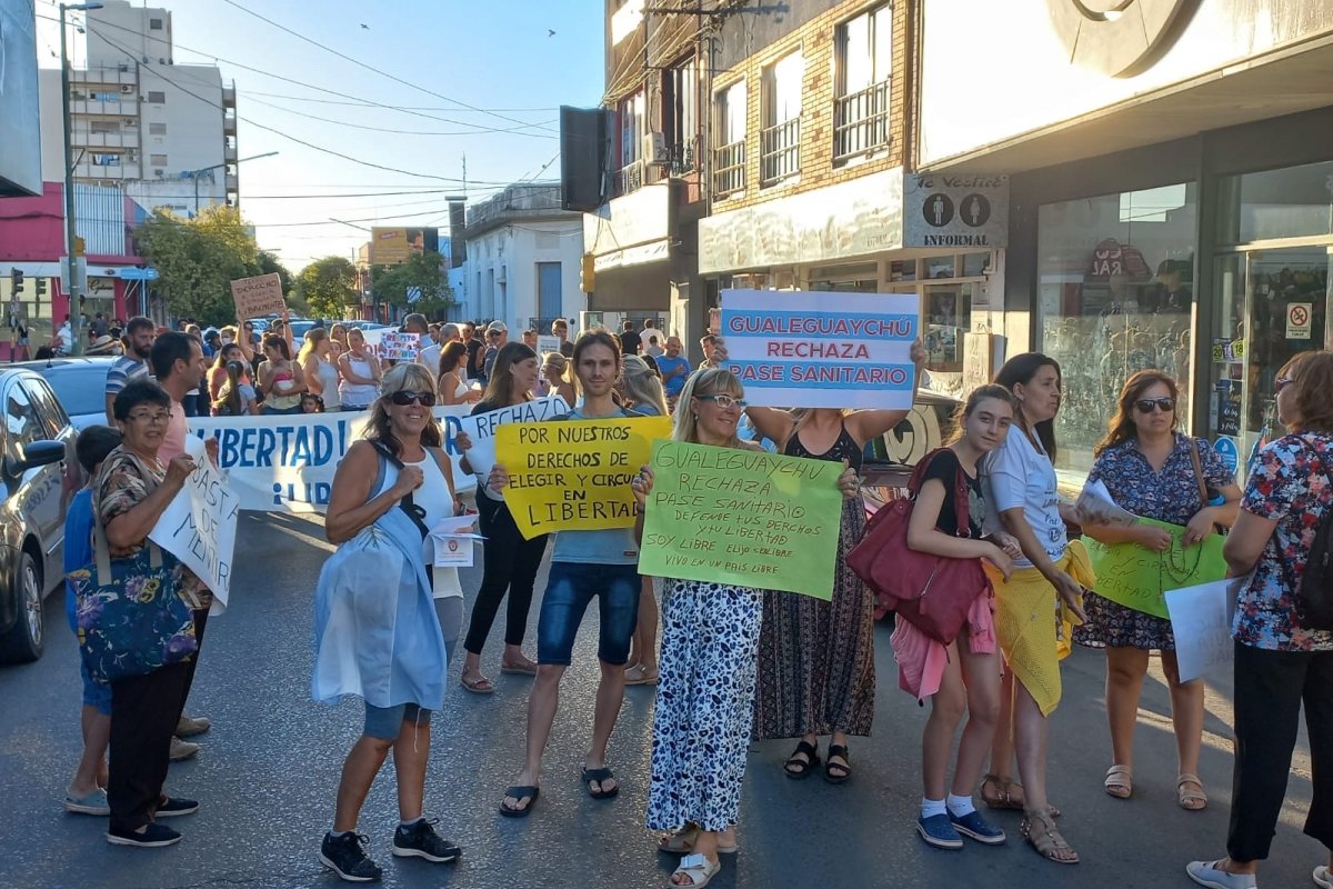 En la tarde de este sábado, un grupo de decenas de personas se congregaron y marcharon en contra del pase sanitario. El comienzo de la protesta se inició en las calles 25 de mayo y Rocamora, y se dirigieron hasta la zona de costanera de la ciudad de Gualeguaychú.