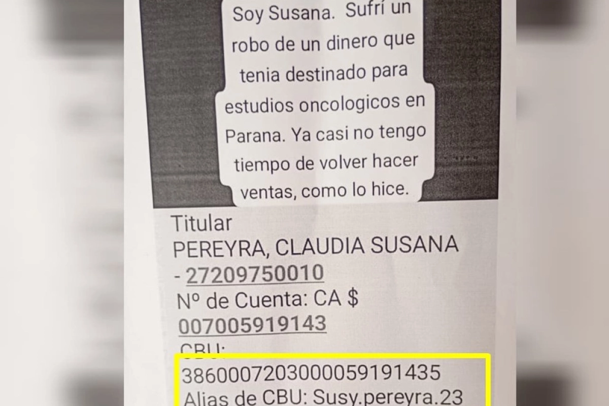 Las personas que deseen colaborar pueden donar a través del alias: Susy.pereyra.23