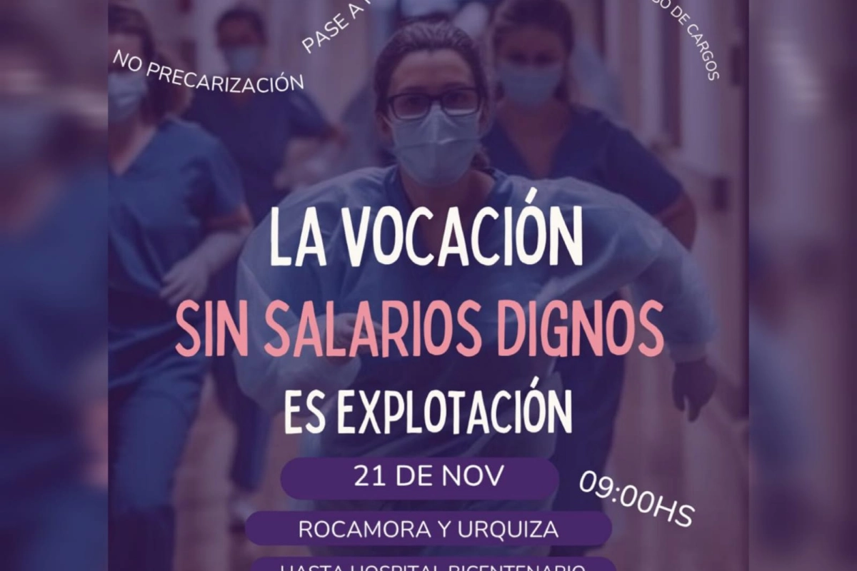El personal de enfermería, reclama el cese de la precarización laboral, el pase a planta permanente, cobertura de cargos y suplencias, y concursos para cargos jerárquicos y jefaturas.