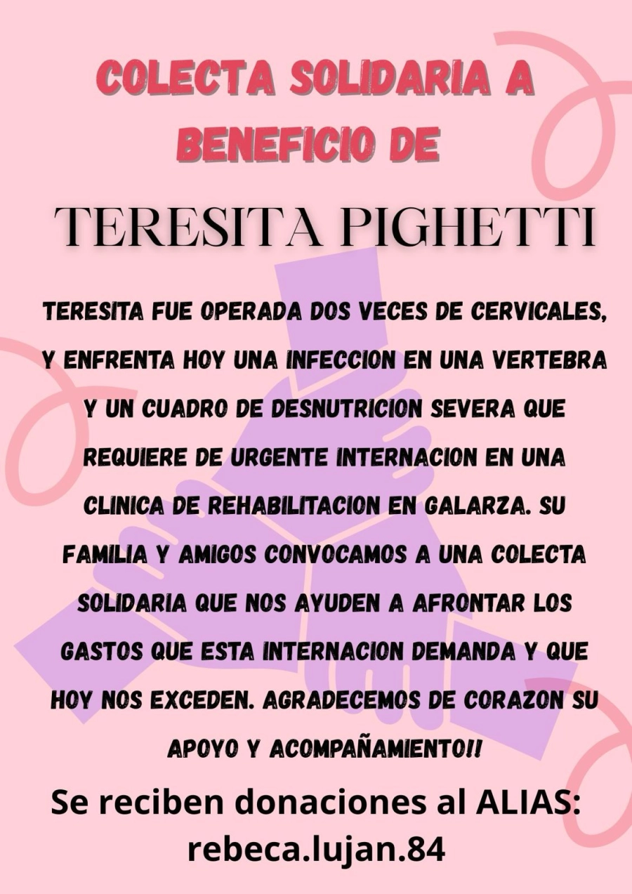 Rebeca Luján, hija de Teresita, dijo en RADIO MÁXIMA que “mamá fue intervenida dos veces, de una cirugía cervical, tenía una compresión medular severa y le había comprometido la movilidad de los miembros”.