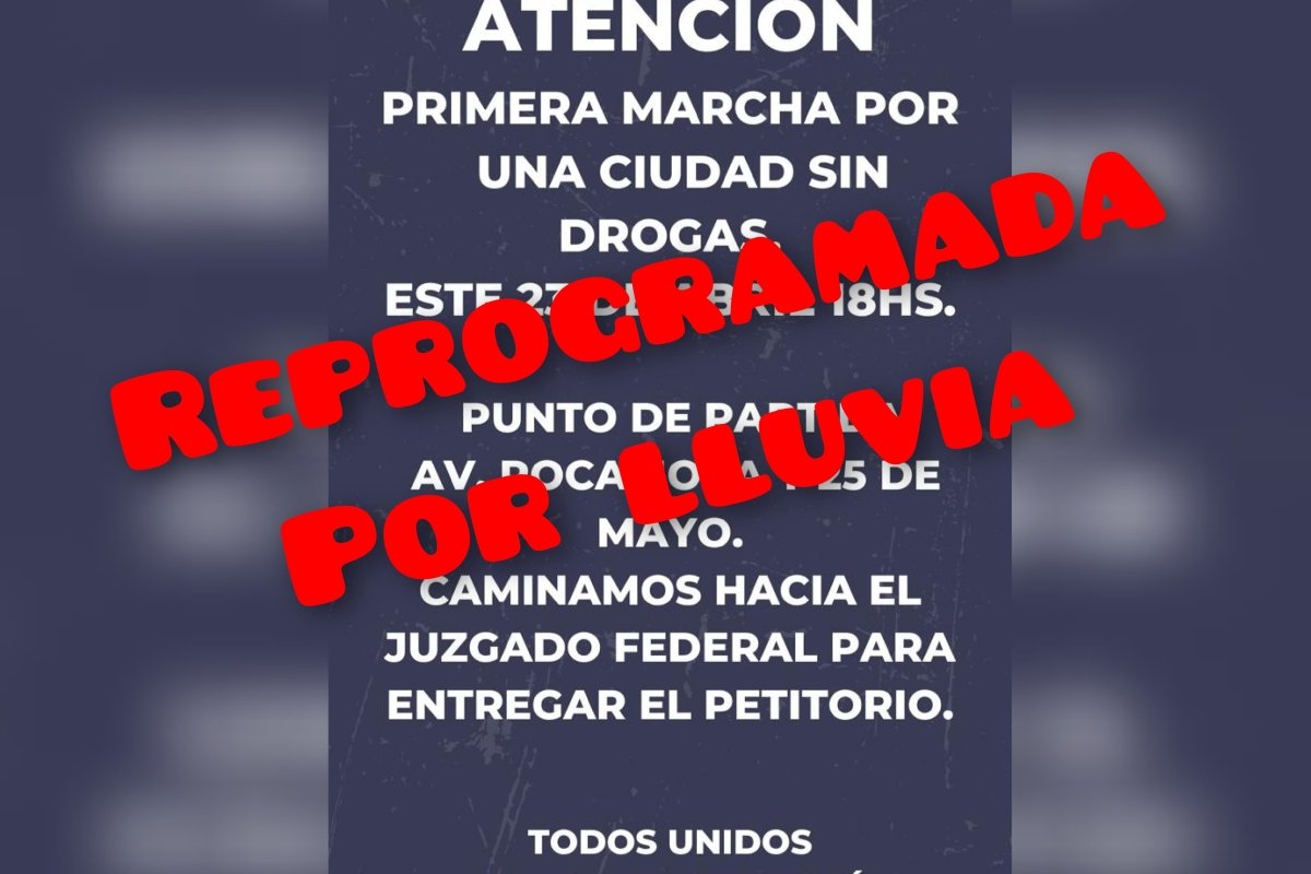 La marcha "Por una ciudad sin drogas", que se iba a realizar este miércoles, se desarrollará el viernes a las 18.