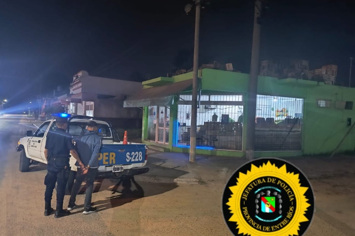 En consulta con el fiscal de turno, se dispuso el traslado del detenido, de 21 años, a la Jefatura Departamental de Gualeguaychú, donde quedó alojado por intento de robo en flagrancia.