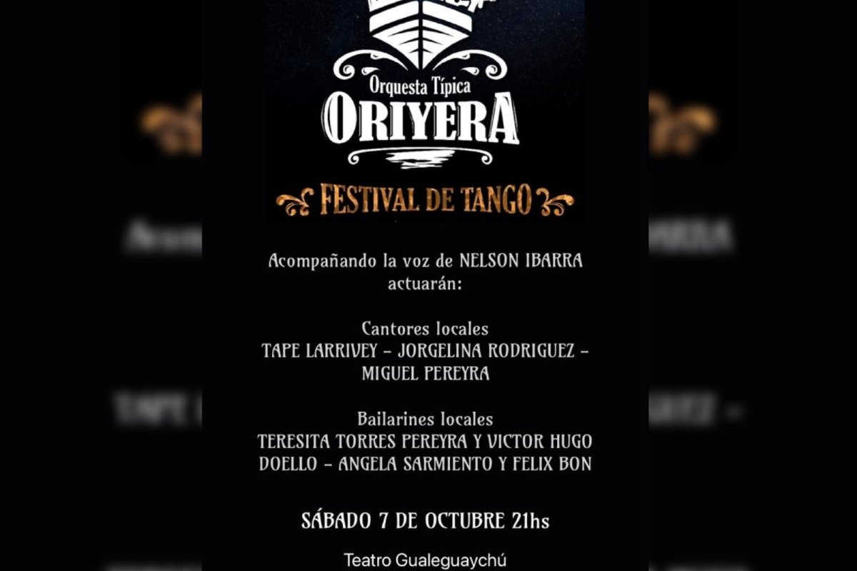 La Orquesta Oriyera estará formada por diez músicos varones y mujeres, tres bandoneones, tres violines, contrabajo, piano, guitarra y el cantor. “Creo que va a salir muy bien y está todo listo para que sea una noche de fiesta”, anticipó Monono, y agregó que “hacer el festival con bailarines es algo nuevo y para la orquesta, con lo cual el escenario será distinto”.