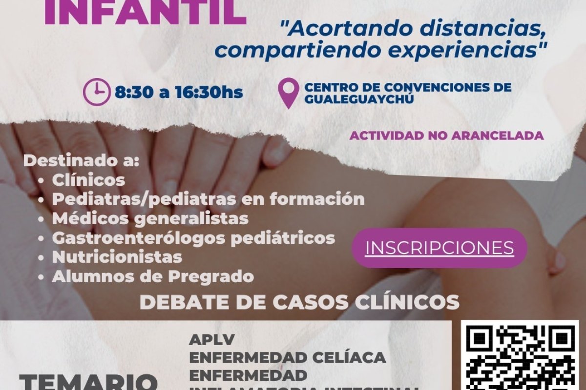 Este viernes 11 de abril, a partir de las 8:30 hs. se desarrollará en el Centro de Convenciones de Gualeguaychú (Estrada 1080, Corsódromo) la jornada de capacitación en gastroenterología infantil titulado “Acortando distancias, compartiendo experiencias”.
