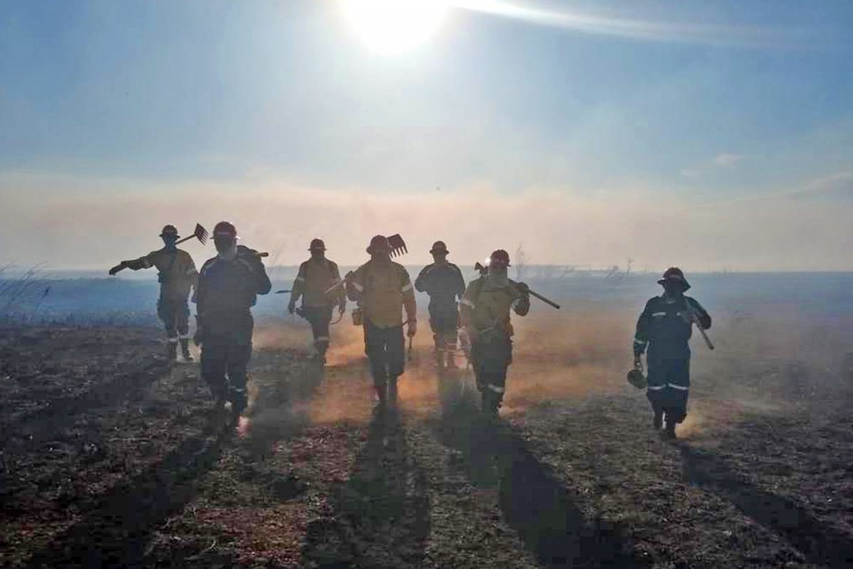 Durante la jornada de este martes continúan las tareas desarrolladas por bomberos voluntarios a 14 kilómetros de la ciudad de Victoria, para el combate del fuego en la zona sur de la Isla, cercano al Arroyo Paranacito.