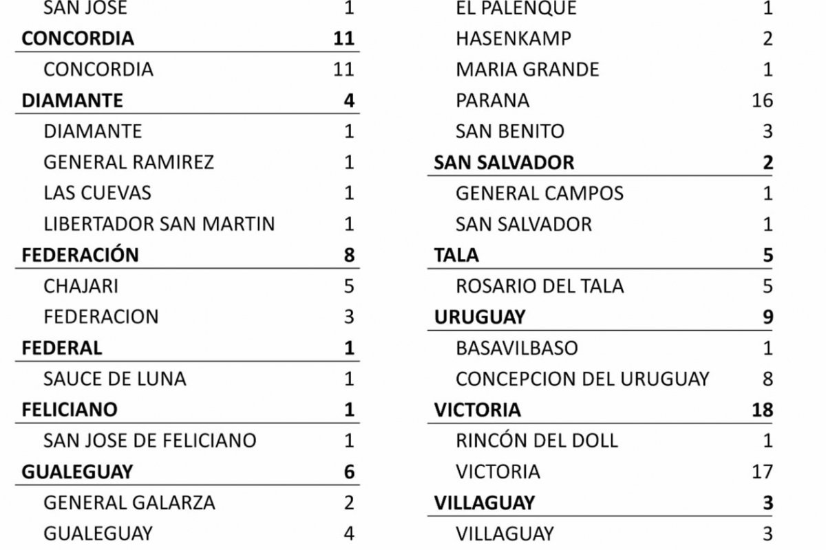 Por otro lado fallecieron cinco mujeres. Una de 77 años oriunda de Rosario del Tala que estaba en el San Roque de la misma localidad; otra de 78 años, de Villa Elisa, que permanecía en el San Benjamín de Colón.