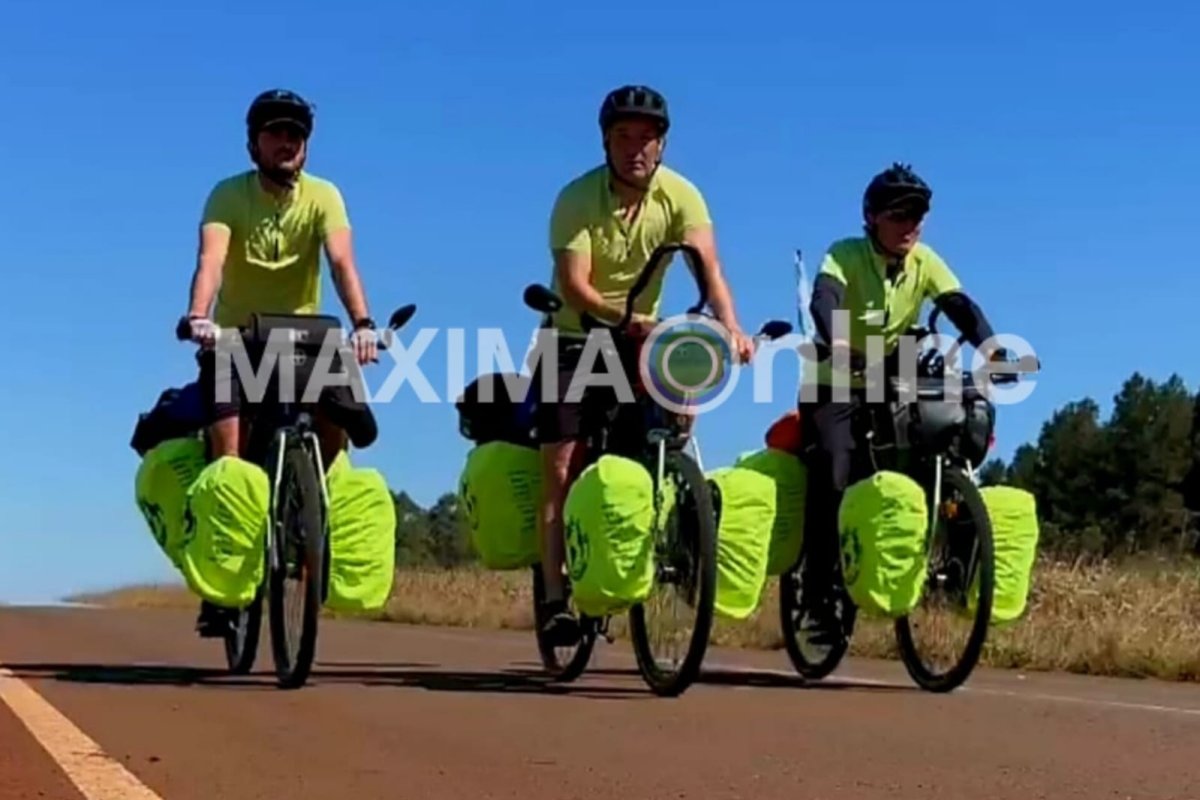 “Intentamos hacer por día unos 100 kilómetros”, contaron. En la noche de este miércoles llegan a Apóstoles, Misiones,