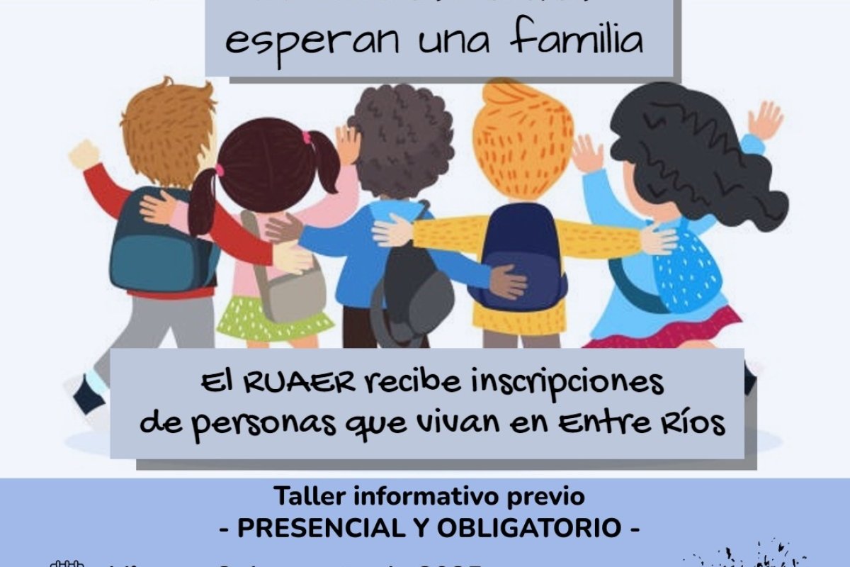 A partir del 11 de agosto y hasta el 25 inclusive, por un período de 10 días hábiles, estará abierta la tercera convocatoria del año para recibir solicitudes de inscripción al Registro Único de Aspirantes a Guarda con Fines Adoptivos de la provincia de Entre Ríos (RUAER). El día viernes, 8 de agosto, a las 14:00, se llevará a cabo el encuentro obligatorio que se realizará en modalidad presencial en Villaguay. Este es el primer paso para solicitar la inscripción en el Registro que, en esta ocasión, es exclusiva para personas residentes en Entre Ríos