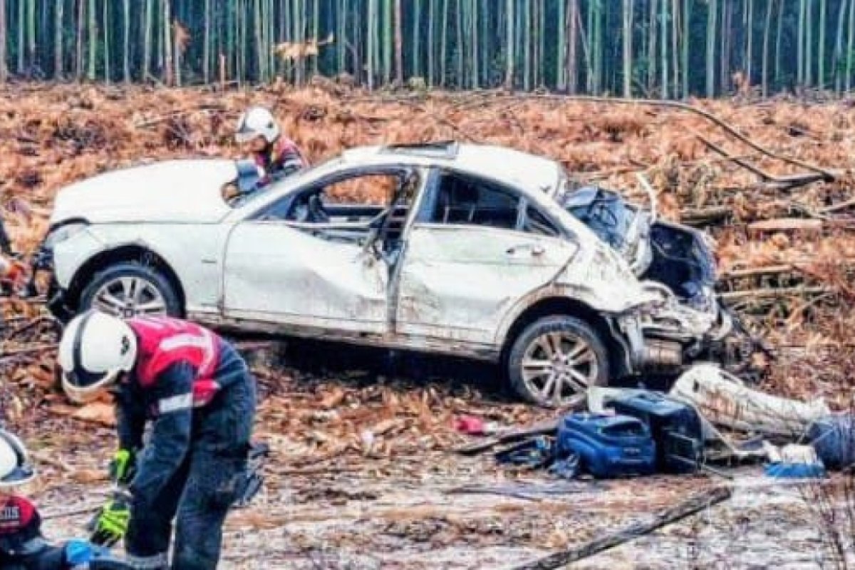 Según el relato del conductor, un hombre de 76 años, el siniestro se produjo tras colisionar con un ciervo que se cruzó repentinamente en la ruta. El impacto con el animal habría provocado la pérdida de control del vehículo, que salió despedido hacia la banquina norte y terminó volcado en un campo lindero.