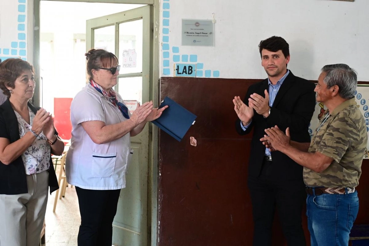 En la Escuela Nº 90 se llevó a cabo el acto de reconocimiento al VGM Ángel Omar Beatriz, quien cursó su educación primaria en esa institución. Con esta instalación, el departamento suma 17 placas conmemorativas que mantienen viva la memoria.