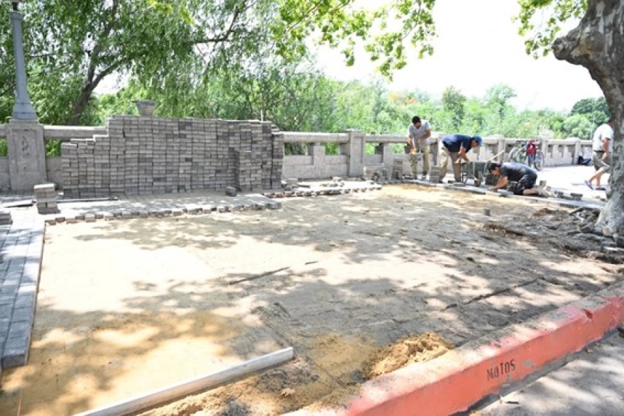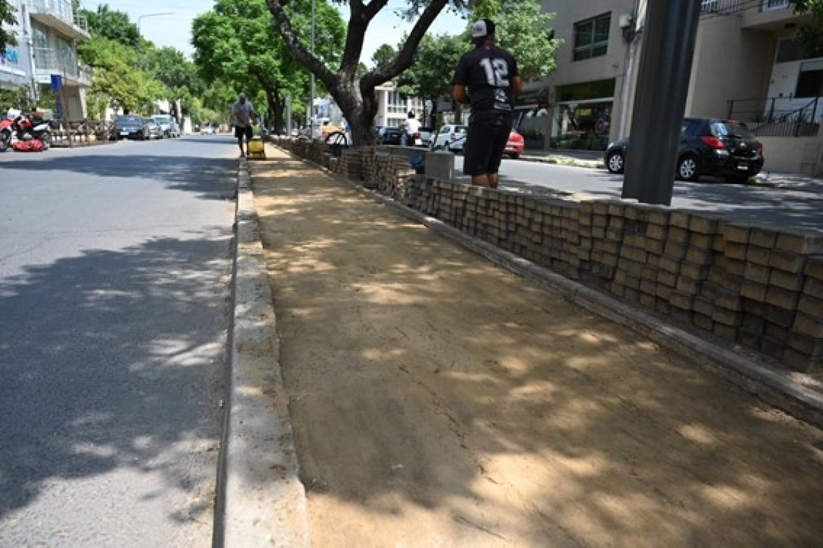 La municipalidad realiza trabajos de recuperación en tramos clave de la trama peatonal urbana, con acciones concentradas en las aceras adoquinadas de la Costanera, entre los Galpones del Puerto y los Obeliscos, y en las plazoletas centrales de avenida Luis N. Palma, desde la plaza San Martín hasta el puente Méndez Casariego.
