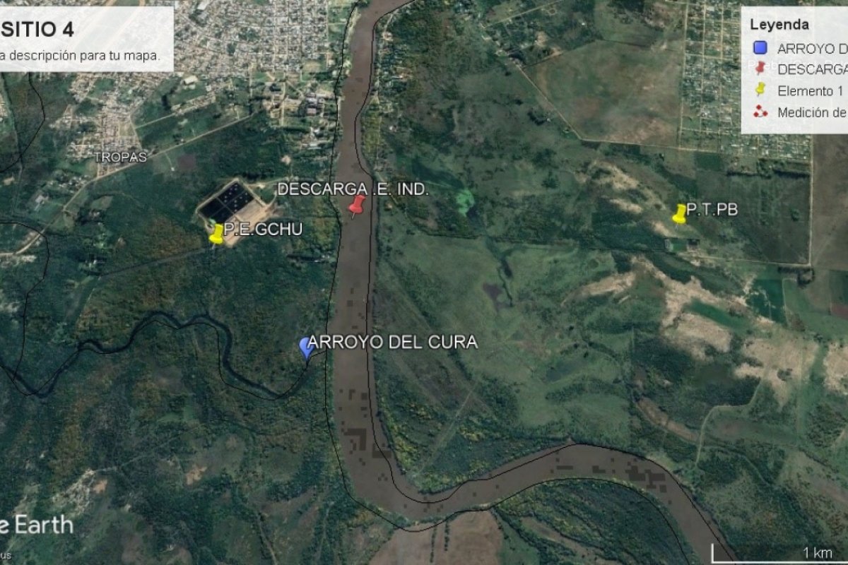 Al observar imágenes satelitales, se identifica que la mencionada “zona 4” del muestreo se corresponde al segmento del río que recibe al arroyo El Cura (curso muy impactado por su historia ambiental en relación con los efluentes urbanos sin tratar durante más de 30años y testigo de repetidas mortandades de peces registradas hasta el año 2000), los efluvios de la planta de tratamientos de efluentes urbanos de Gualeguaychú y la zona de vuelco de los efluentes industriales del PIG. (desde enero sin tratamiento secundario, y con ocultamiento público sobre la calidad de los efluentes). A su vez en esta zona derivan los efluentes urbanos de muy dudoso tratamiento de Pueblo Belgrano.