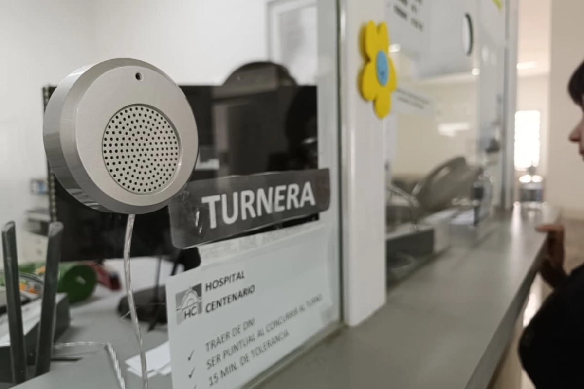 El Hospital Centenario incorporó doce micrófonos intercomunicadores, cinco en la Turnera General, dos en la Secretaría de Admisión de Consultorios Externos en el Pabellón 2, tres en la Turnera del Pabellón 3 y dos en la Turnera del Laboratorio ubicada en el Pabellón 4.