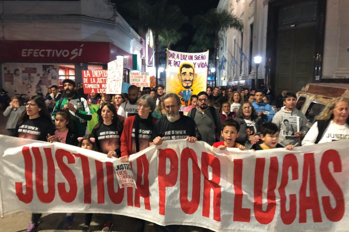 “Lucas tendría que estar con nosotros”, decía un cartel, en tanto que el cartel principal rezaba “Justicia por Lucas”.