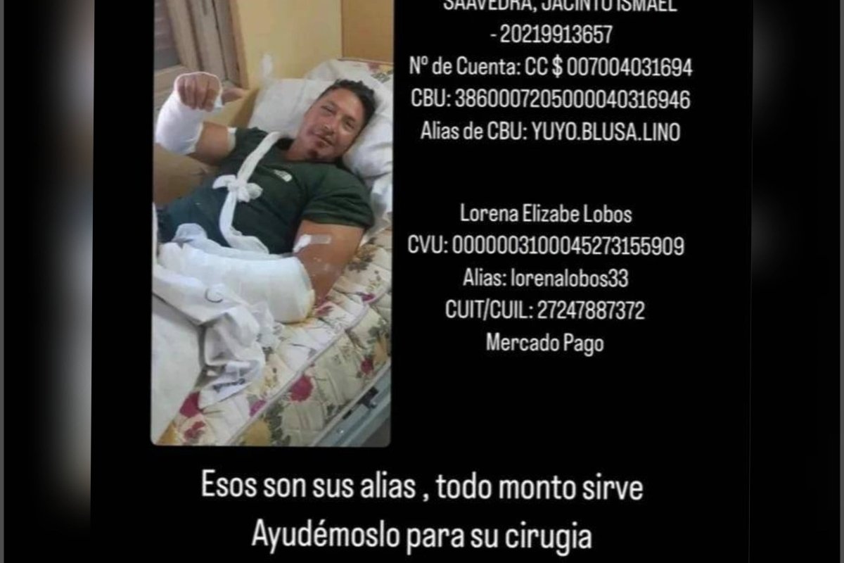 Saavedra tiene los dos brazos quebrados, una lesión gravísima en la cara, el maxilar superior partido en dos pedazos, la órbita del ojo afectada y otras lesiones.