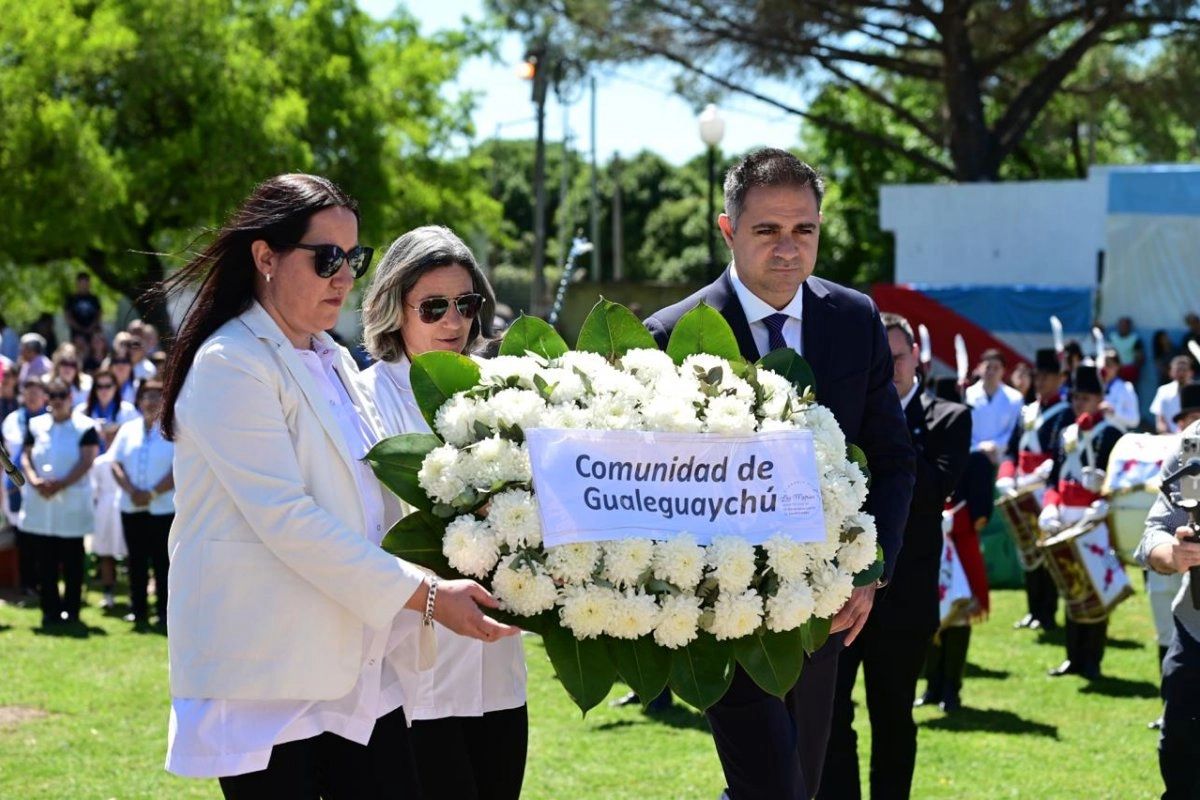El acto contó con la destacada participación de la Banda Militar “Tambor de Tacuarí”, perteneciente al Regimiento de Infantería 1 “Patricios”, que interpretó el Himno Nacional Argentino y la Marcha a Entre Ríos. Luego se realizó una ofrenda floral, y posteriormente se escucharon las palabras de la directora de la Escuela n°3 "Tomás de Rocamora", María Lorena Etchegoyen.