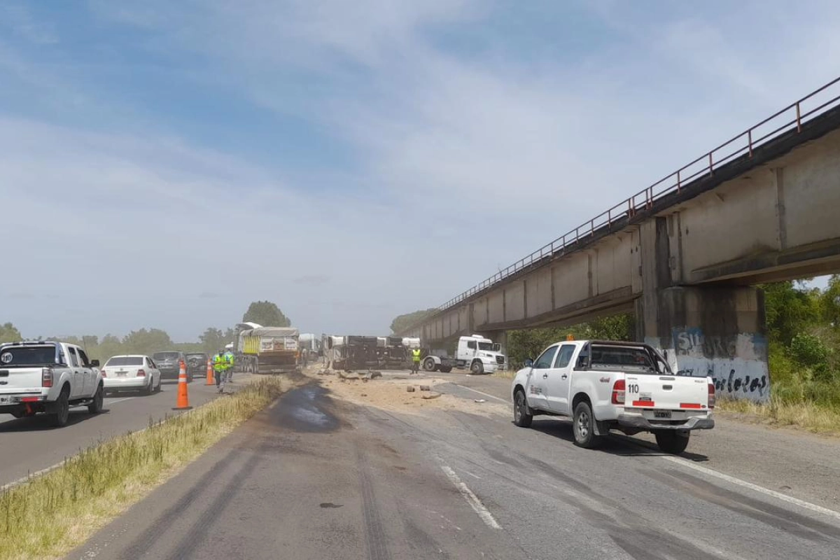 Pasado el mediodía de este jueves, se produjo una colisión por alcance entre dos camiones, con un vehículo volcado en el puente Urquiza, en el sentido Entre Ríos a Buenos Aires.
