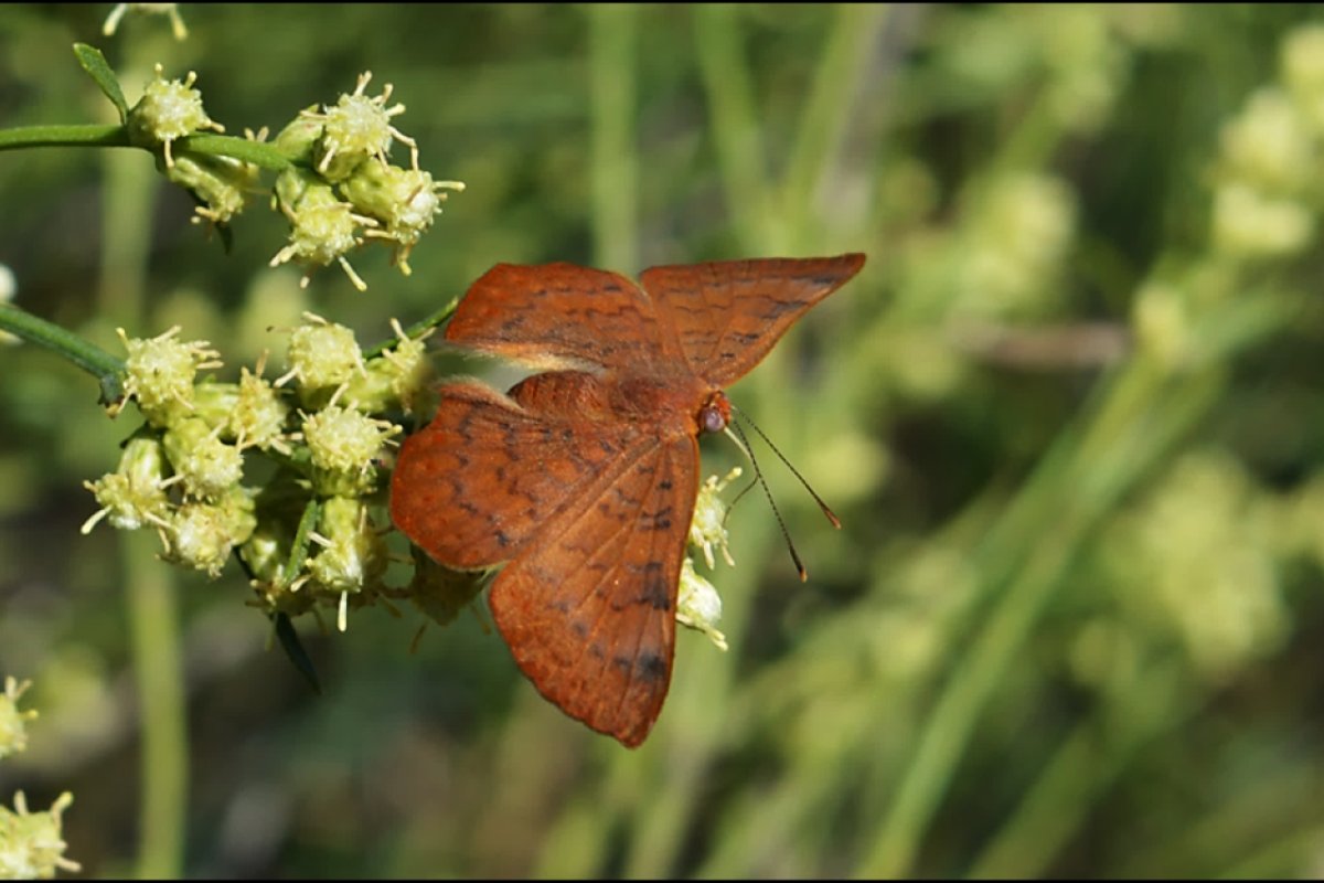 Unas1300 especies –alrededor del 8% de las mariposas del mundo– integran esta interesante familia de distribución mundial, pero principalmente neotropical. Afines a los licénidos (nota del 21/Mayo/2025), con quienes comparten la presencia de anillos en las antenas y algunas conductas peculiares de sus orugas, los riodínidos poseen una gran variedad de patrones morfológicos y si bien no tienen un marcado dimorfismo sexual, en los machos las patas del primer par son cortas, mientras que en las hembras son normales y completamente funcionales. Por otra parte, muchas especies son inconfundibles cuando se posan, porque giran en círculos –de ahí el nombre de danzarinas con el que se las suelen designar– hasta que se ubican, mirando hacia abajo y con sus antenas estiradas.