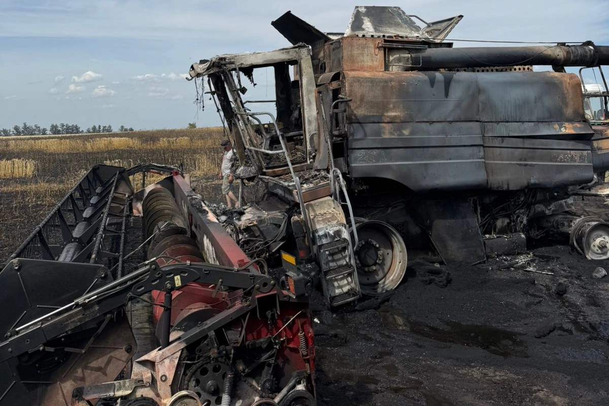 En el hecho resultó con algunas quemaduras en la cara el hombre que estaba trabajando en la cosechadora.
