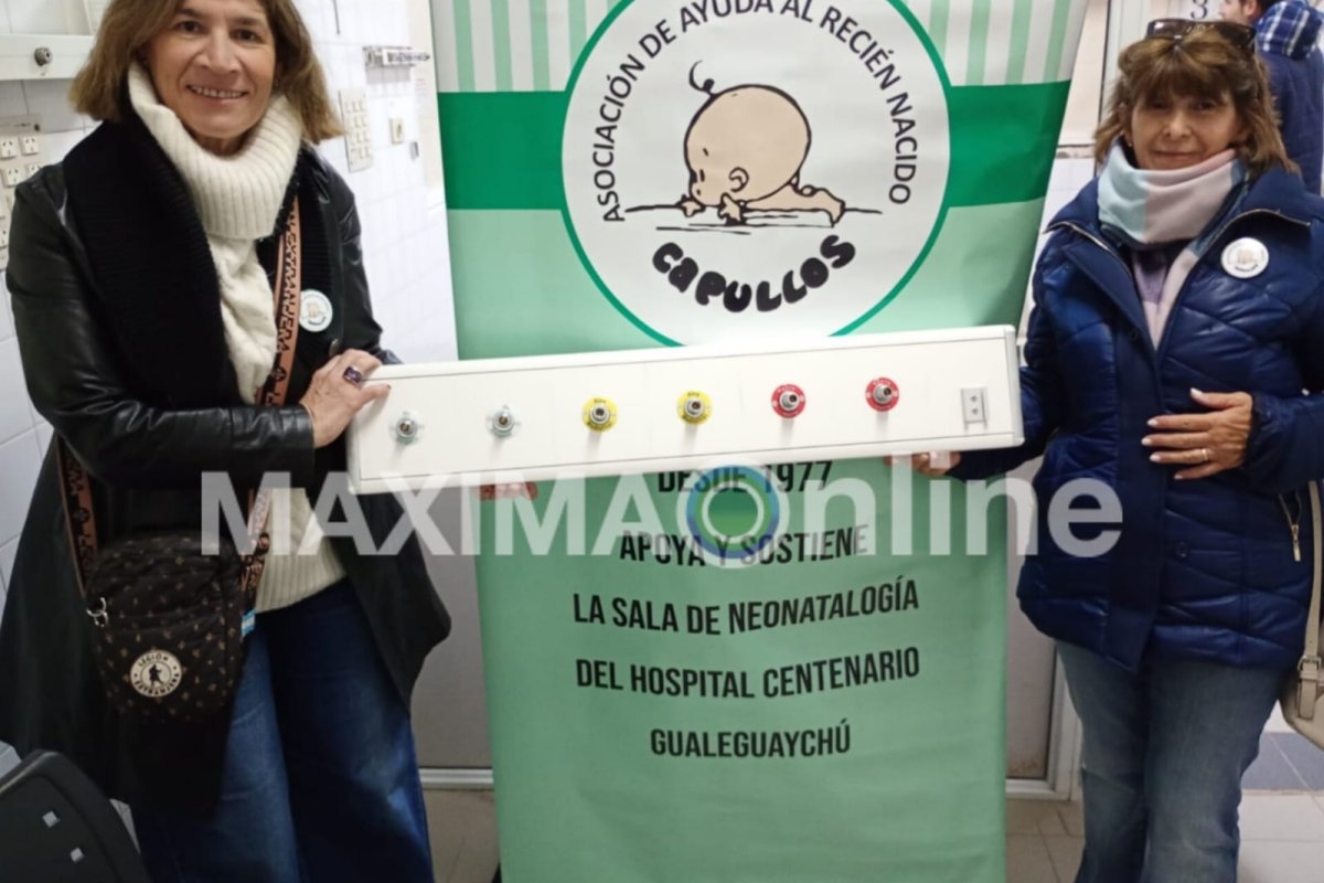 RADIO MÁXIMA dialogó con Claudia Martínez, jefa de enfermería de la Neo del hospital, Mariana Esnaola y Adriana Darre de Capullos. “Estamos muy felices de poder entregar esto a la Neo, todos saben que es con ayuda de la comunidad de Gualeguaychú. Nuestros ingresos son de nuestros socios, casi 500, con una cuota mínima de dos mil pesos por mes y del alquiler de vajillas”, indicaron desde el equipo de trabajo, conformado en total, por quince mujeres.