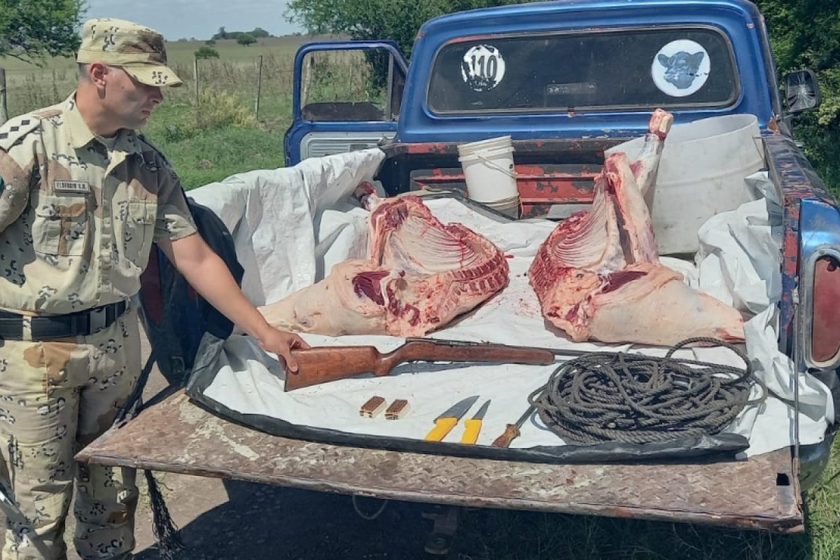 Personal policial de la Brigada de Prevención de Delitos Rurales con sede en este Departamento Gualeguaychú, en horas del mediodía de este viernes, en momentos que realizaban operativo rutinario de control de vehículos y ocupantes, interceptan en un camino vecinal del ejido de Urdinarrain, a un carnicero de esa ciudad, con un animal vacuno faenado, del cual en un principio se desconocía su procedencia.