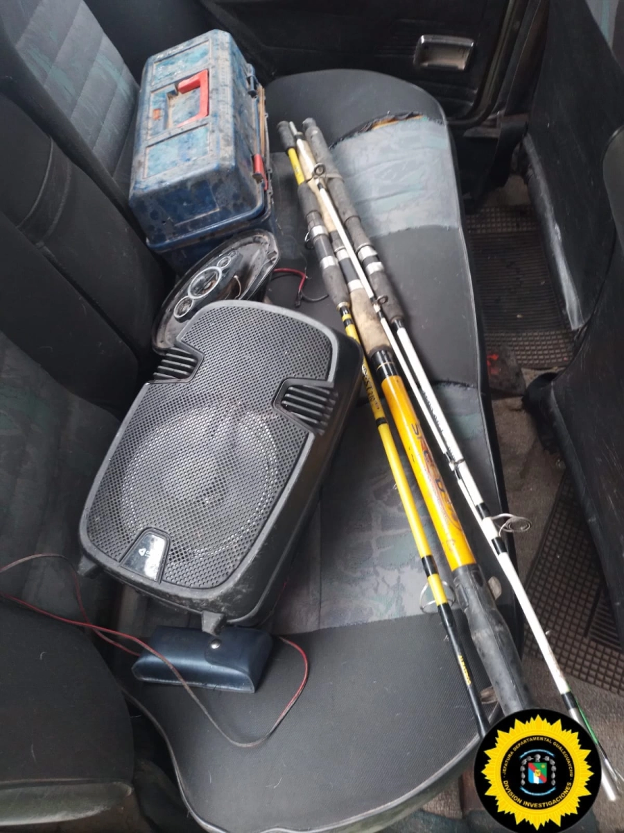 Comunicada la novedad a la Fiscalía Auxiliar en turno, y mediante mandamiento judicial otorgado por el Juzgado de Garantías, se procedió al allanamiento y registro domiciliario, el cual arrojó resultado positivo. En el lugar se efectuó el formal secuestro del vehículo denunciado, que en su interior contenía diversos elementos: artículos de pesca, dos parlantes (uno portátil), un estéreo, un hacha, dos cañas de pescar y un par de anteojos recetados con su estuche.
