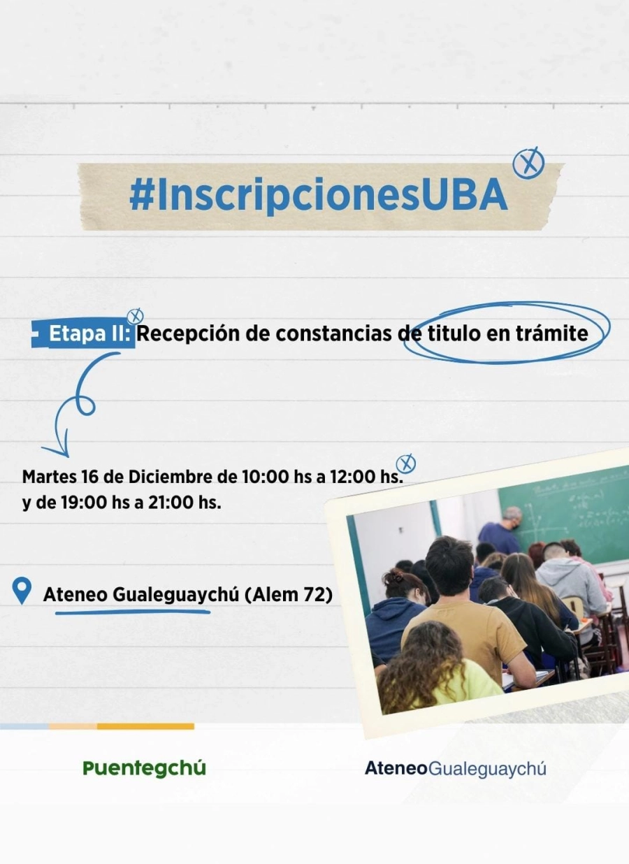 Durante la jornada, estudiantes de Gualeguaychú que actualmente cursan distintas carreras universitarias brindarán información detallada sobre el proceso de inscripción, los requisitos, las modalidades de cursada y la experiencia de estudiar en la UBA, tanto en formato presencial como virtual.