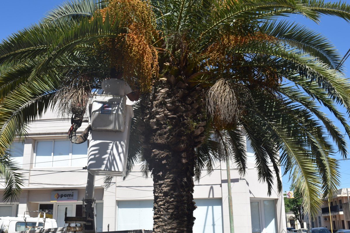La dirección de Espacios públicos continúa con tareas de poda de árboles en diversos lugares de la ciudad, como Plaza de la Estación, Camino de la Costa, despeje de luminarias y acometidas, podas en línea de media tensión en Urquiza al Oeste en conjunto con Cooperativa Eléctrica, podas de palmeras en Avenida Rocamora, podas preventivas de árboles peligrosos y puntuales en función de la demanda de los vecinos.