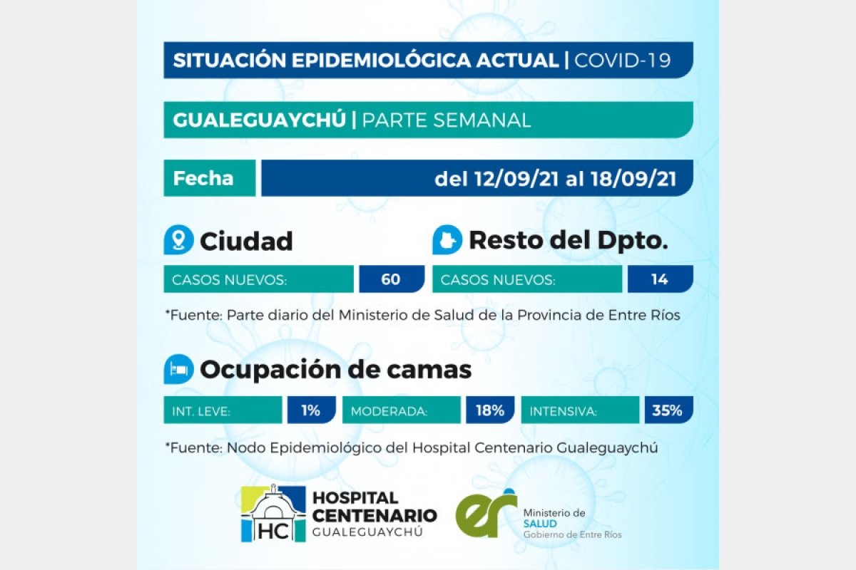 Comparados con la semana anterior, se produjo un descenso de contagios, siendo la baja de un 22,9% en el departamento y de un 28,6% en la ciudad.