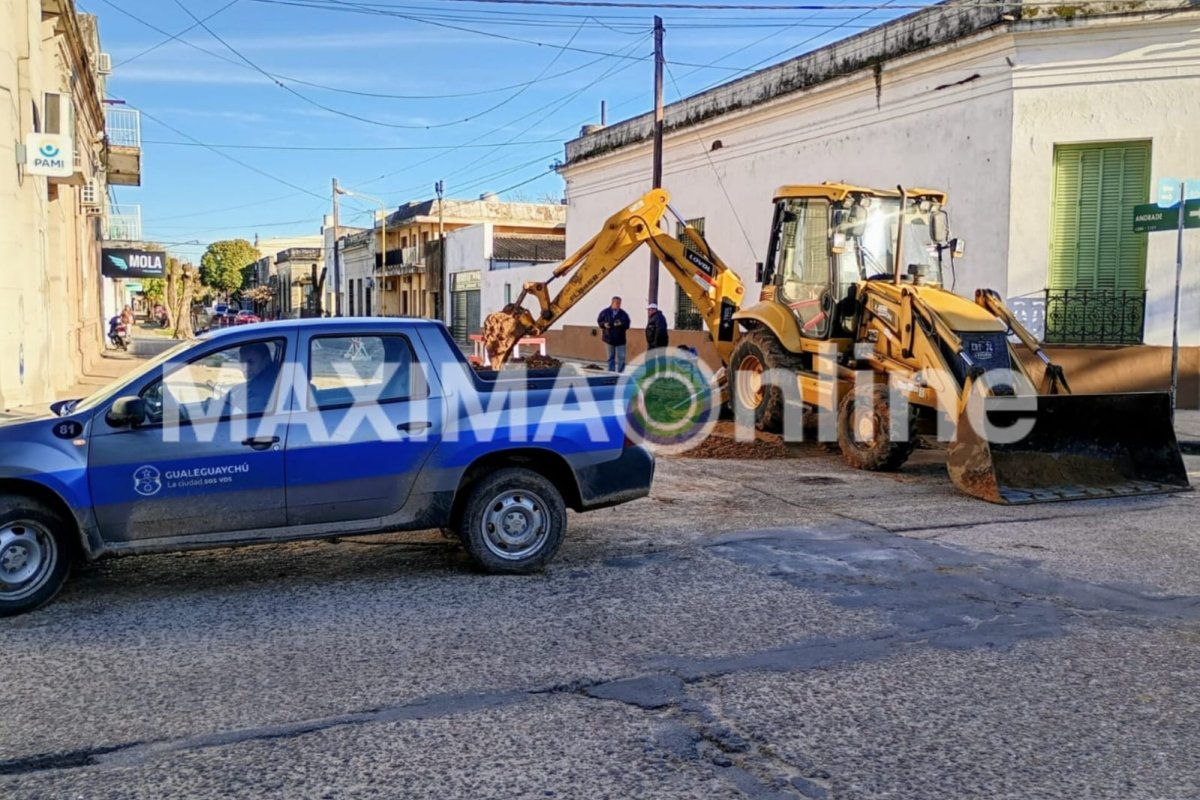 En una primera instancia, la cuadrilla de la Secretaría quitó los adoquines que estaban ubicados sobre el caño de agua que alimenta a los domicilios de esa cuadra, el cual será reemplazado de manera completa por personal de Obras Públicas, quienes realizarán también las conexiones a los diferentes domicilios, mientas que una cuadrilla de Obras Sanitarias será la encargada de unir este nuevo caño a la red de agua potable.