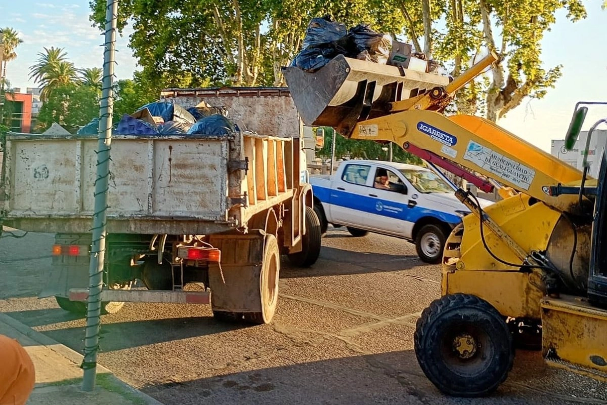 Dentro del Corsódromo se dispusieron dos camiones y maquinaria de Obras Públicas para garantizar la limpieza inmediata del predio. En los sectores externos se desplegaron cinco camiones y dos máquinas cargadoras para atender la demanda generada por el intenso movimiento turístico y recreativo.