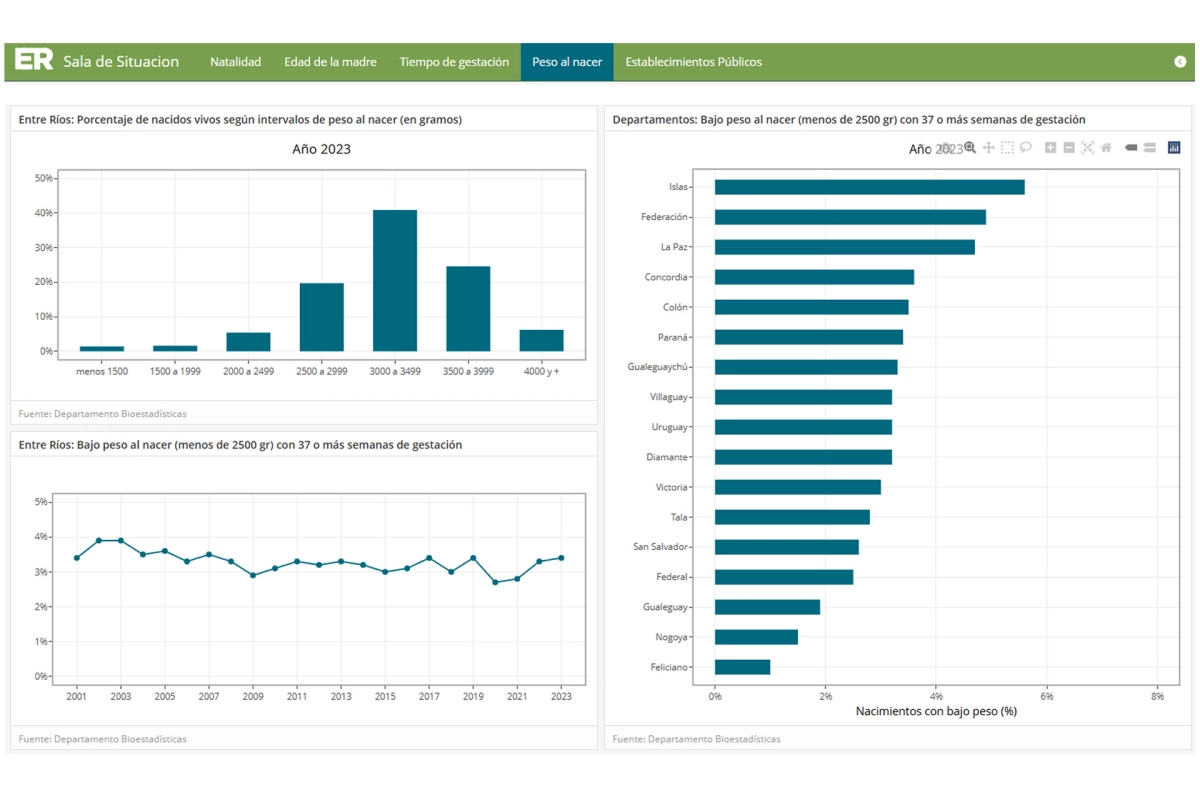 El monitor, disponible en el apartado de Sala de Situación de la cartera sanitaria, consolida la información esencial para la planificación de políticas públicas, incluyendo el número de nacimientos por año, la edad de la madre, la edad gestacional, el peso al nacer en niños a término y la proporción de partos que ocurren en el sector de salud pública.