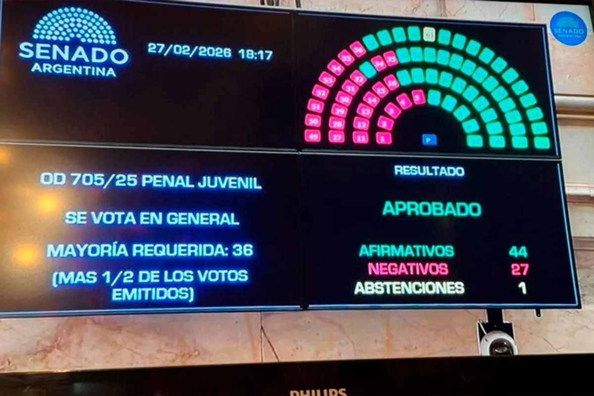 Con 44 votos a favor, 27 en contra y 1 abstención, se aprobó en el Senado el nuevo Régimen Penal Juvenil que establece procedimientos diferenciados para adolescentes.