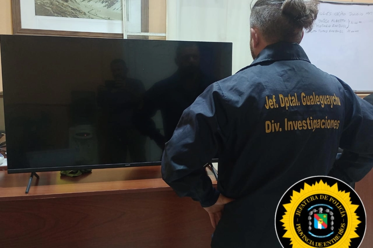 En el lugar se procedió al formal secuestro de un televisor marca Phillips, color negro, de 50 pulgadas, en buen estado de conservación, con un detalle en su pantalla, su control remoto y el correspondiente cable de alimentación.